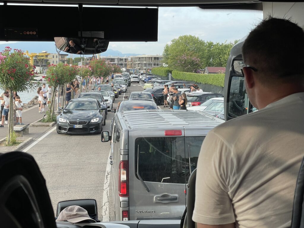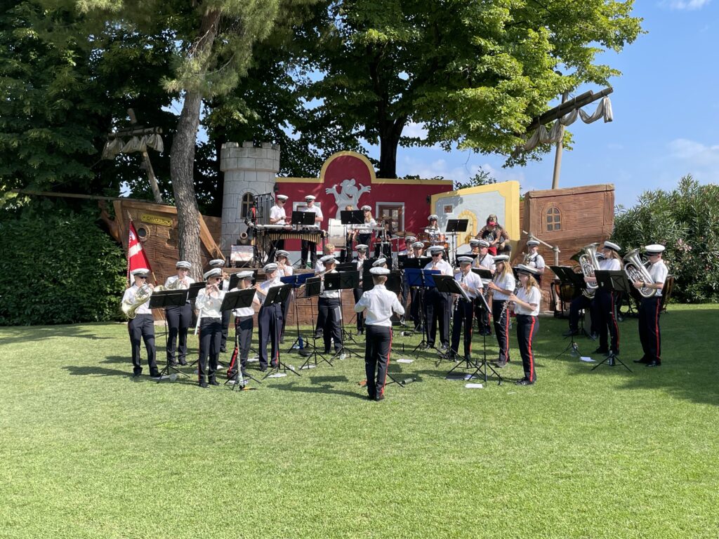 Dagens første job startede klokken 10 og nu havde vi pludselig travlt. I samlet flok begyndte vi at slæbe slagtøj op af Monte Baldo (en bakke på omkring 50 meter med en solid 40%’s stigning) og gik ellers i gang med at sætte det hele op. Koncerten skulle foregå på toppen af Monte Baldo, som viste sig at være en mindre udfordring. Der var bl.a. et nodestativ der i kampens hede knækkede midt over og nogen var også i lettere karambolage med de stædige stativer. Udover det, så viste formiddagssolen sig også frem, hvilket resulterede i, at vores kære Dirigent Hr. Magnus Tipsmarks iPad – med alle partiturene – overophedede og måtte derfor ty til almindeligt papir. Trods de førnævnte problemstillinger, nåede vi det hele til tiden og vi spillede en rigtig god koncert.
