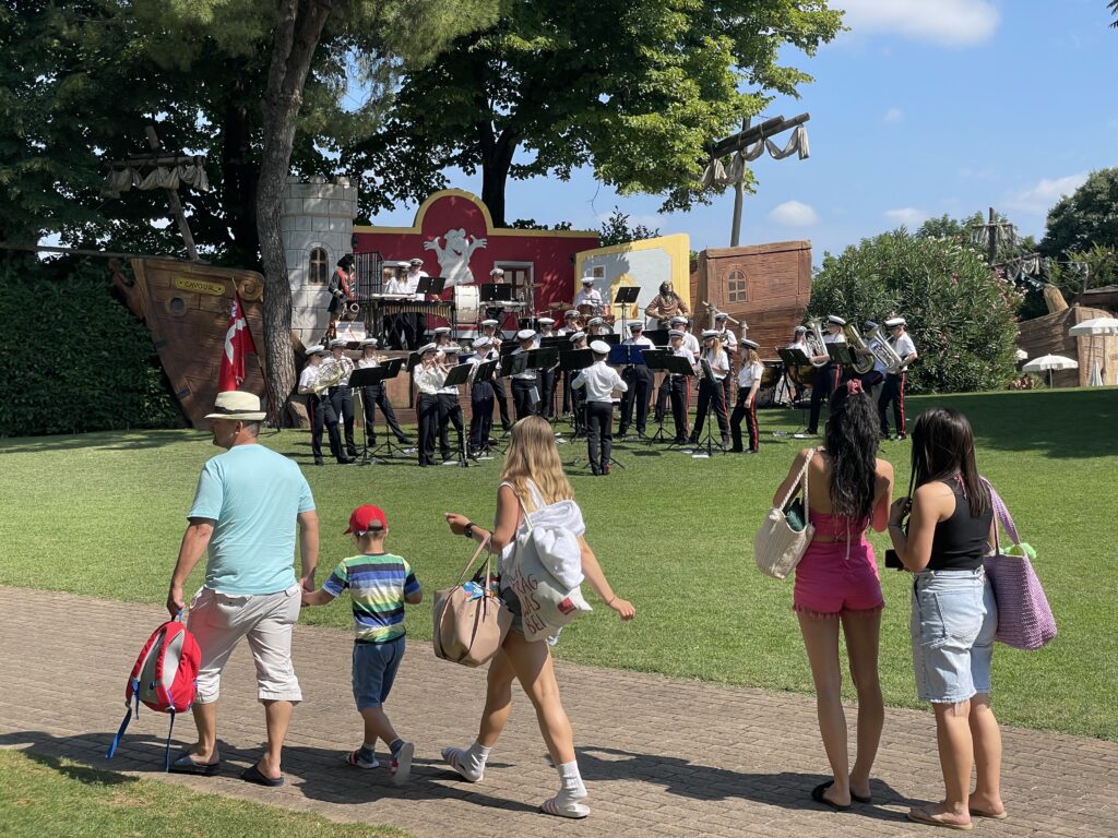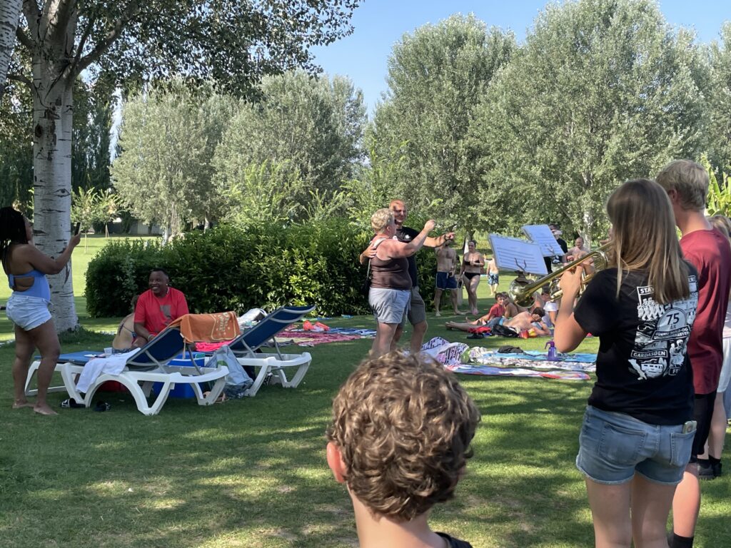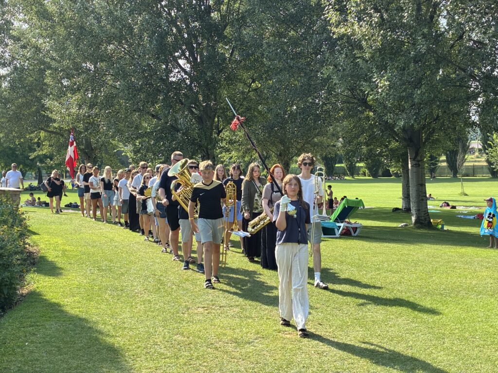 Under marchturen besluttede Lea, som var major, at orkesteret var terrængående. Det gik op og ned af bakker, over græsset og med indlagte forhindringer. Turen gik rundt mellem folk, som lå på tæpper. Flere steder skiltes orkesteret, som det røde hav for Moses, da vi jo helst ikke skulle i karambolage med de solglade italienere. Efter en hammer varm marchtur, ventede der slushice til alle.