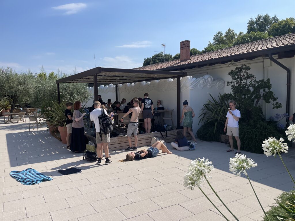 Til aften spiste vi på en super hyggelig restaurant ved vandet, hvor der var lidt for alle. Mens nogle fik lækker pasta, kæmpede andre med bøffer der var komplet umulige både at spise og skære ud. Sidsel fik byttet sin bøf hele 2 gange. Den første gang var den så rå at, som Alexander sagde “Den kunne rejse sig op og gå”. Den næste bøf var komplet tyggegummi, men 3. Gang er jo heldigvis som regel lykkens gang. Efter aftensmaden ventede der sig musik, hvor en gruppe af OSU’s medlemmer skulle spille et nogle numre på restauranten. Efter tog de fleste tilbage på campingpladsen for at hygge, mens andre blev på restauranten og lytte til lækker italiensk karaoke. Det blev også til en lækker aftendukkert, hvor der er i vandet blev spillet 1-10. Det resulterede i, at Westh og Kathrine efter skulle bytte tøj. Der var lidt udfordring med størrelserne på tøjet, som ikke helt hængte sammen med størrelserne på kroppene. Men til sidst lykkedes det og resultatet blev – til stor beundring – ganske udemærket. I følge Westh var nederdelen hammer lækker – men det var bare ikke lige hans stil. Nu går vi i seng, så vi kan være friske og veludhvilede til sidste dag i Italien i morgen. Good choice.